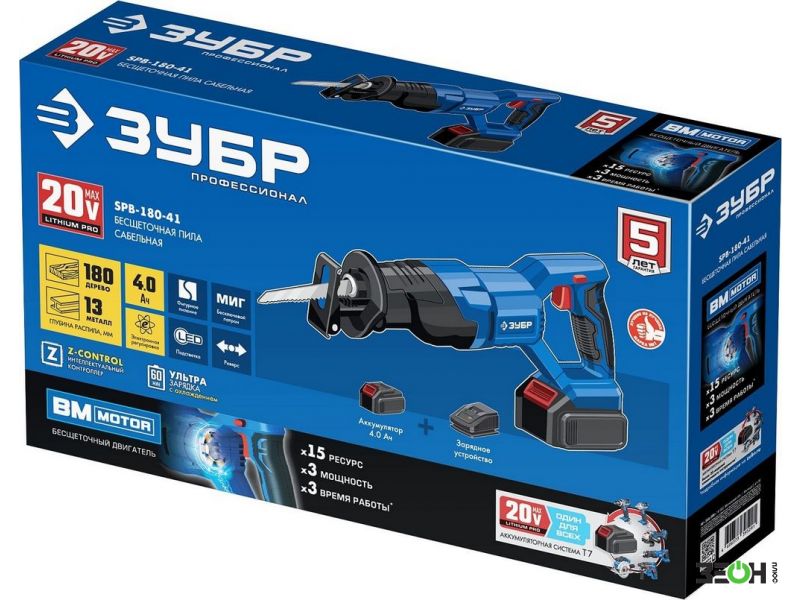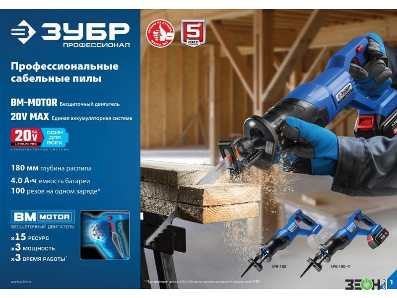 Сабельная пила Зубр Профессионал SPB-180-41 (с 1-им АКБ)