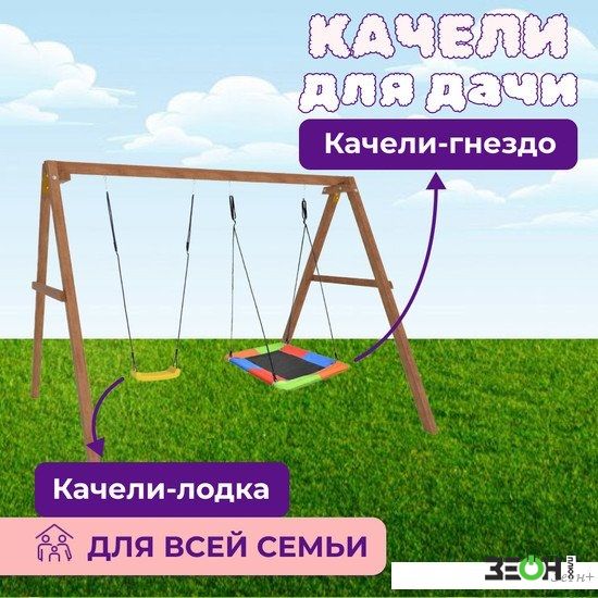 Стационарные качели Капризун Деревянные с гнездом Лодочка Р911-35