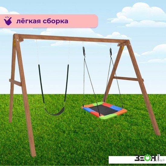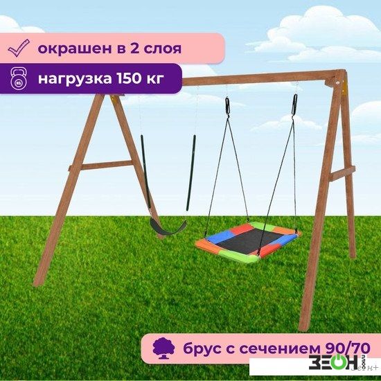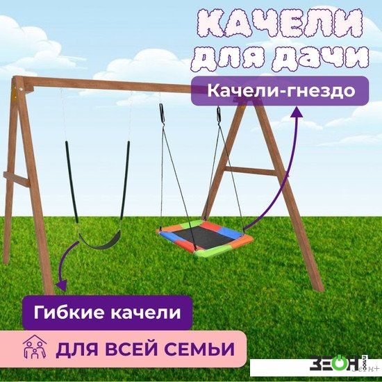 Стационарные качели Капризун Деревянные с гнездом Лодка и гибкими качелями Р911-64