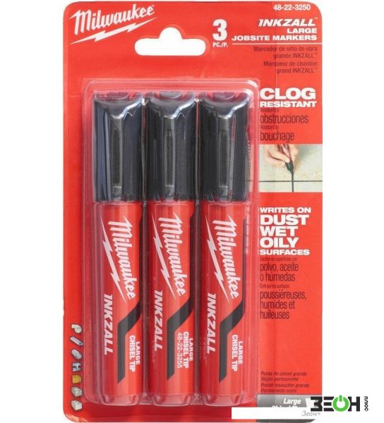 Маркер Milwaukee Inkzall L 4932471554 (3 шт, черный)