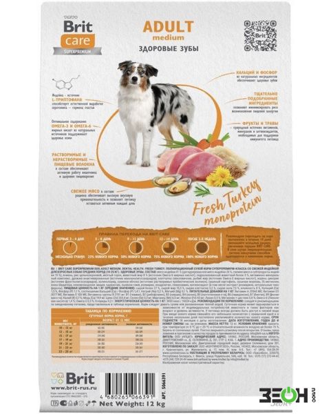 Brit Care Dog Adult M Monoprotein Dental Health 12 кг