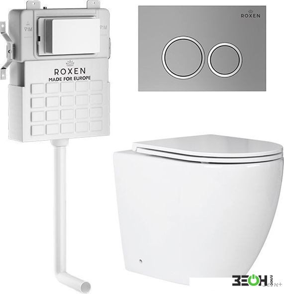 Унитаз приставной Roxen Antares в комплекте с инсталляцией Attach 5 в 1 966902 (кнопка: хром матовый)