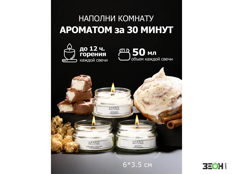 Набор из 3х ароматических свечей Emerge Попкорн, шоколад, синнабон aromacandle11