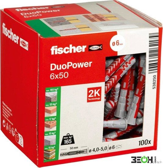 Дюбель универсальный Fischer DuoPower 6 x 50 538250 (100 шт)