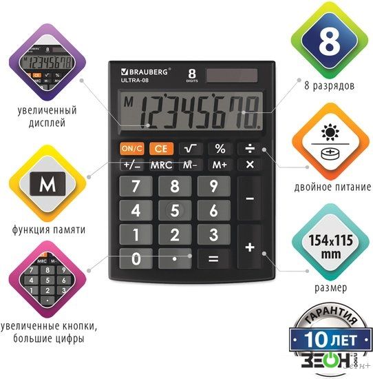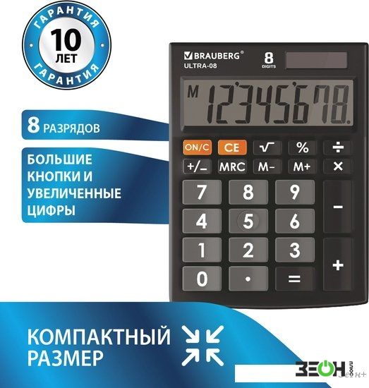 Бухгалтерский калькулятор BRAUBERG Ultra-08-BK 250507 (черный)